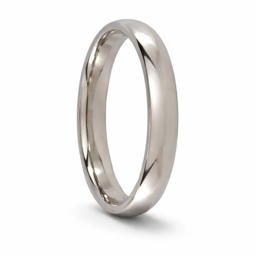 The Custom 4mm Polished Rounded Titanium Wedding Ring is an ultra-slim, refined band machined to order in Grade 5 aerospace titanium. At 4mm wide, it offers a minimal, understated look suited to men who prefer a narrow band or want to stack with other rings. Titanium is 45% lighter than steel and hypoallergenic. The polished rounded dome ensures comfort through daily active wear, gym sessions, and outdoor activities. Custom engraving available. Shipped Australia-wide with a free resize within 60 days.