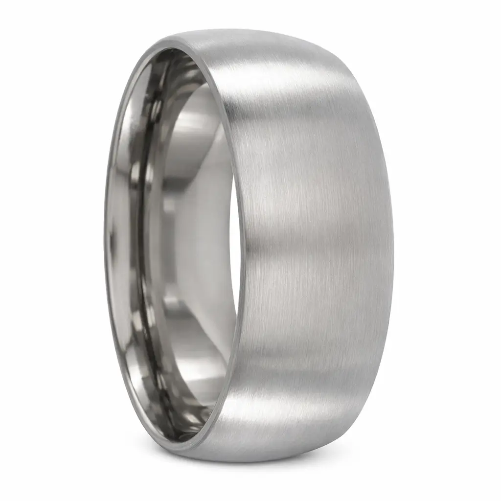 The Custom 8mm Brushed Half Round Titanium Wedding Band is machined to order in Grade 5 aerospace titanium with a classic half-round dome profile and premium brushed surface finish. At 8mm wide, it delivers a bold, masculine look while remaining lightweight and comfortable for all-day wear. The brushed finish handles minor scuffs better than polished bands, ideal for active men. Hypoallergenic and 45% lighter than steel. Custom engraving available. Shipped Australia-wide with free resize within 60 days.
