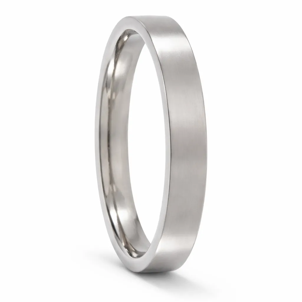 The Custom Made 3mm Brushed Flat Titanium Wedding Ring is the slimmest flat-profile option in the custom titanium range, machined to order in Grade 5 aerospace titanium with a brushed surface. At 3mm wide, it offers a barely-there aesthetic ideal for men who want minimal jewellery or a stacking companion. Titanium is hypoallergenic and 45% lighter than steel. Custom engraving available. Shipped Australia-wide with free resize within 60 days.